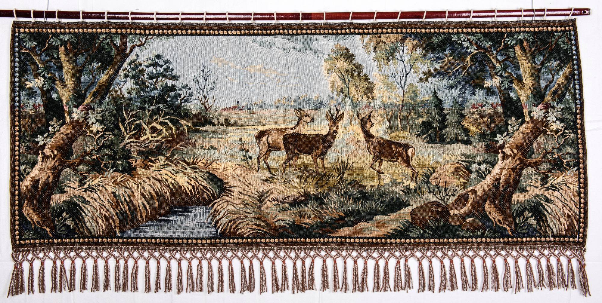 Der Hirschbeutel in der DDR Blues- und Tramperszene in den 1970er und 80er Jahre wurden aus alten textilen Wandbehängen, die bei Oma und Opa über dem Sofa hingen, selbst genäht. Oft waren es Landschaftsmotive mit Rehen oder dem "röhrenden Hirsch". Die Region um Hohenstein-Ernstthal war im 20. Jahrhundert deutschlandweit das Zentrum der Herstellung dieser Wandteppiche und schweren Möbelstoffe.