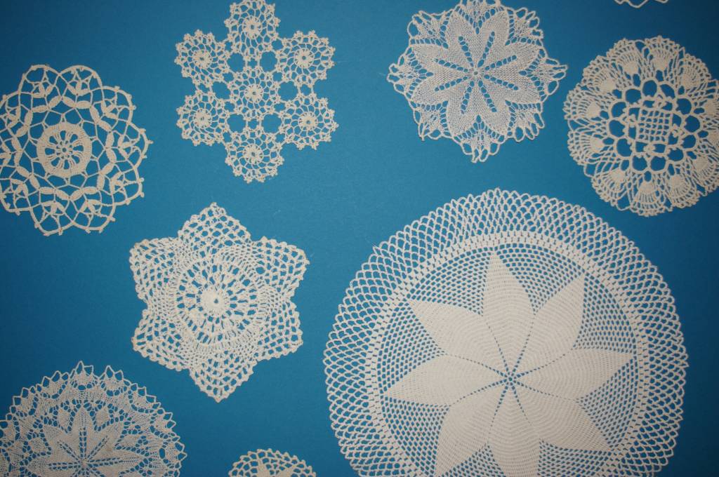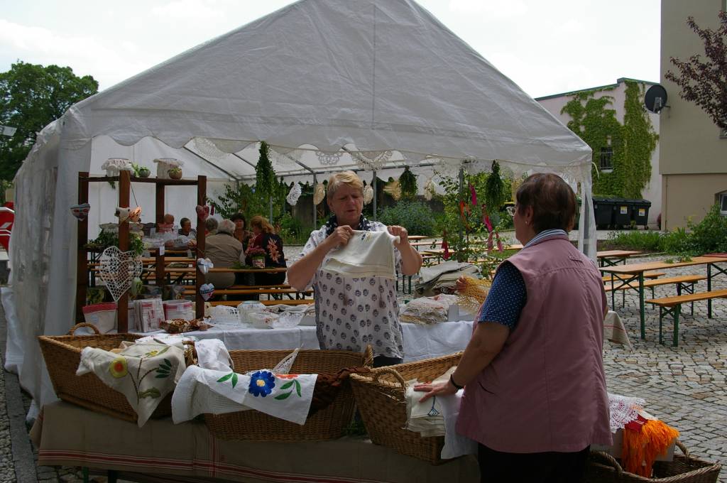 textiler Flohmarkt mit alten Handarbeiten