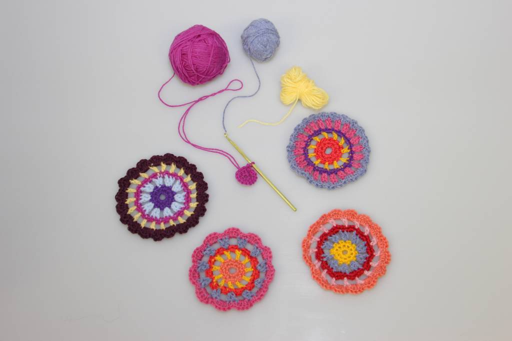 Als kleine Überraschung bekommt ihr von den unterstützenden Häkelpatinnen eine gehäkelte Blume zur Schmückung eures fertigen Häkelnetzes.