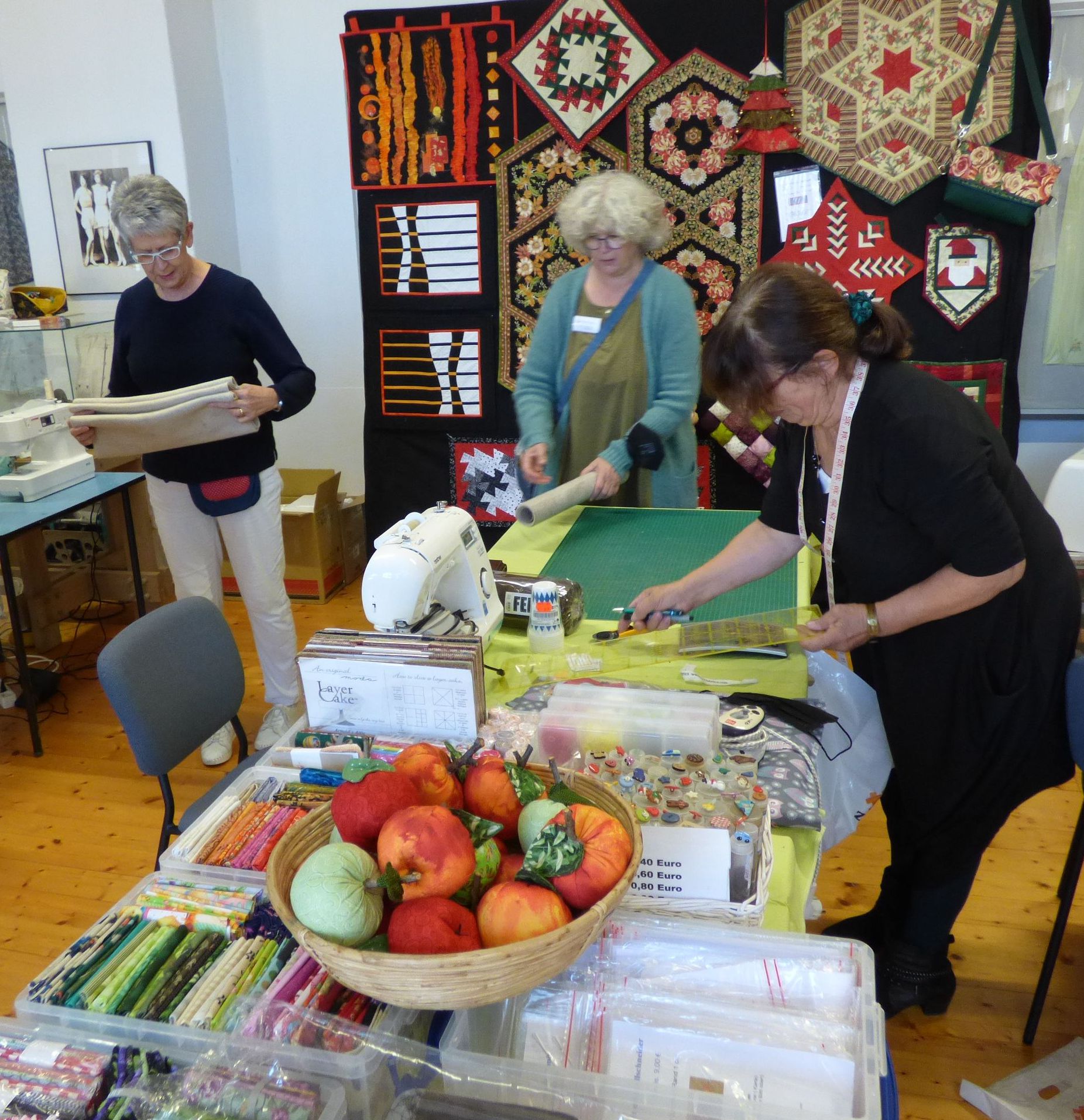 kleine Ladenstraße mit Stoffen, Patchworkzubehör, alten Handarbeiten