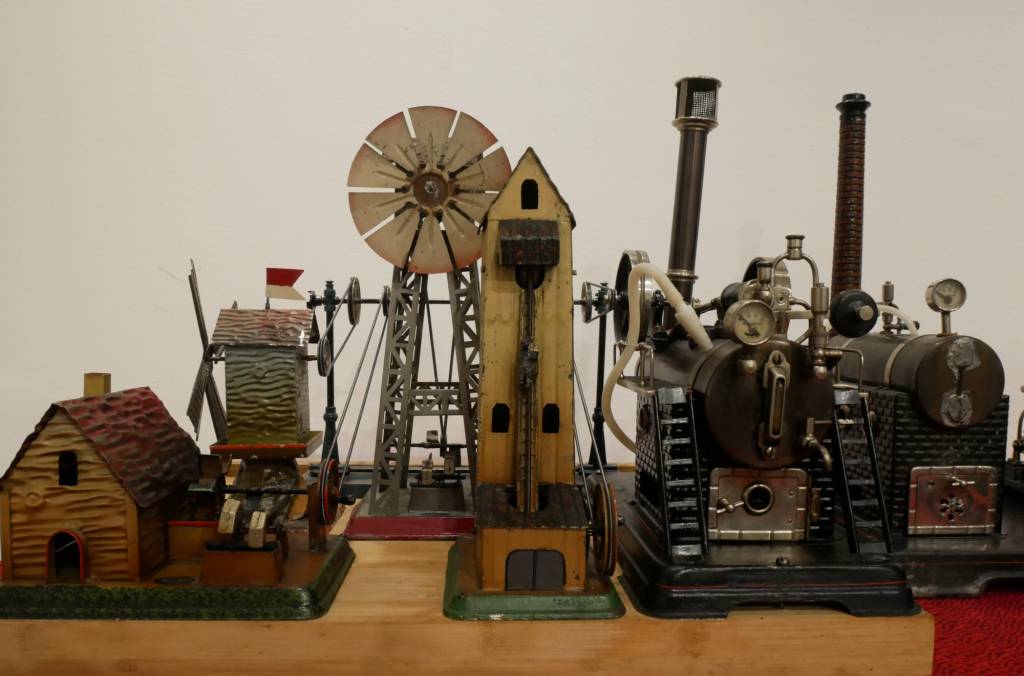 Die Sammler Jürgen Morgner aus Callenberg und Jens Römisch aus Gersdorf ergänzen die Weihnachtsschau mit Blechspielzeug und Dampfmaschinenmodellen. Von Ing. Roland Reichelt aus Chemnitz sind selbst gebaute Stirlingmotoren in vielfältigsten Variationen ausgestellt.