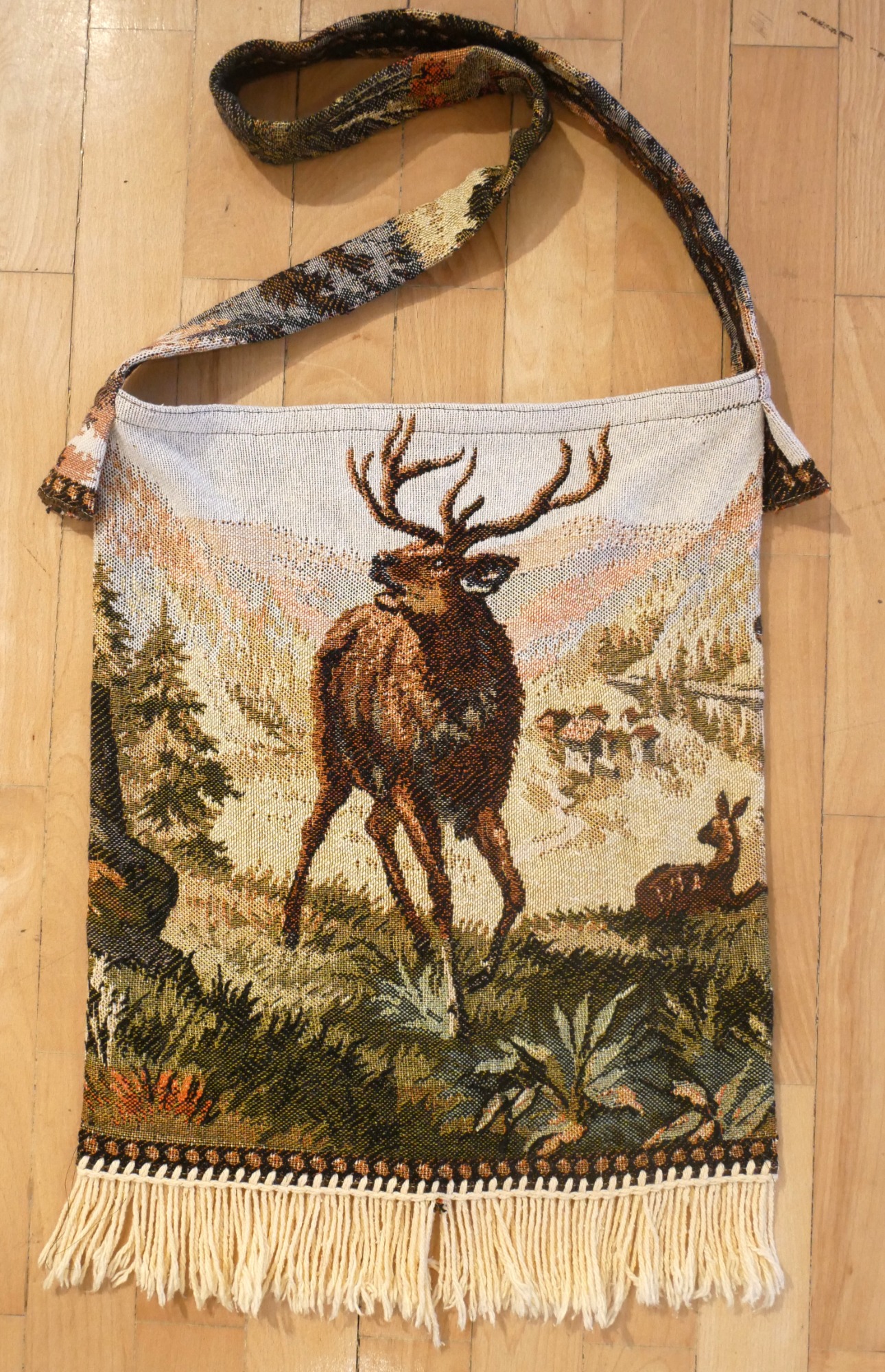 Hirschbeutel aus verschiedenen Motiven von Wandteppichen