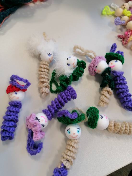 Unter Anleitung unserer erfahrenen Strickfrauen kannst du das Häkeln und Stricken erlernen und dir selber eine kleine Tasche fertigen. Auch kleine Glückswürmchen als Anhänger sind schnell gemacht.