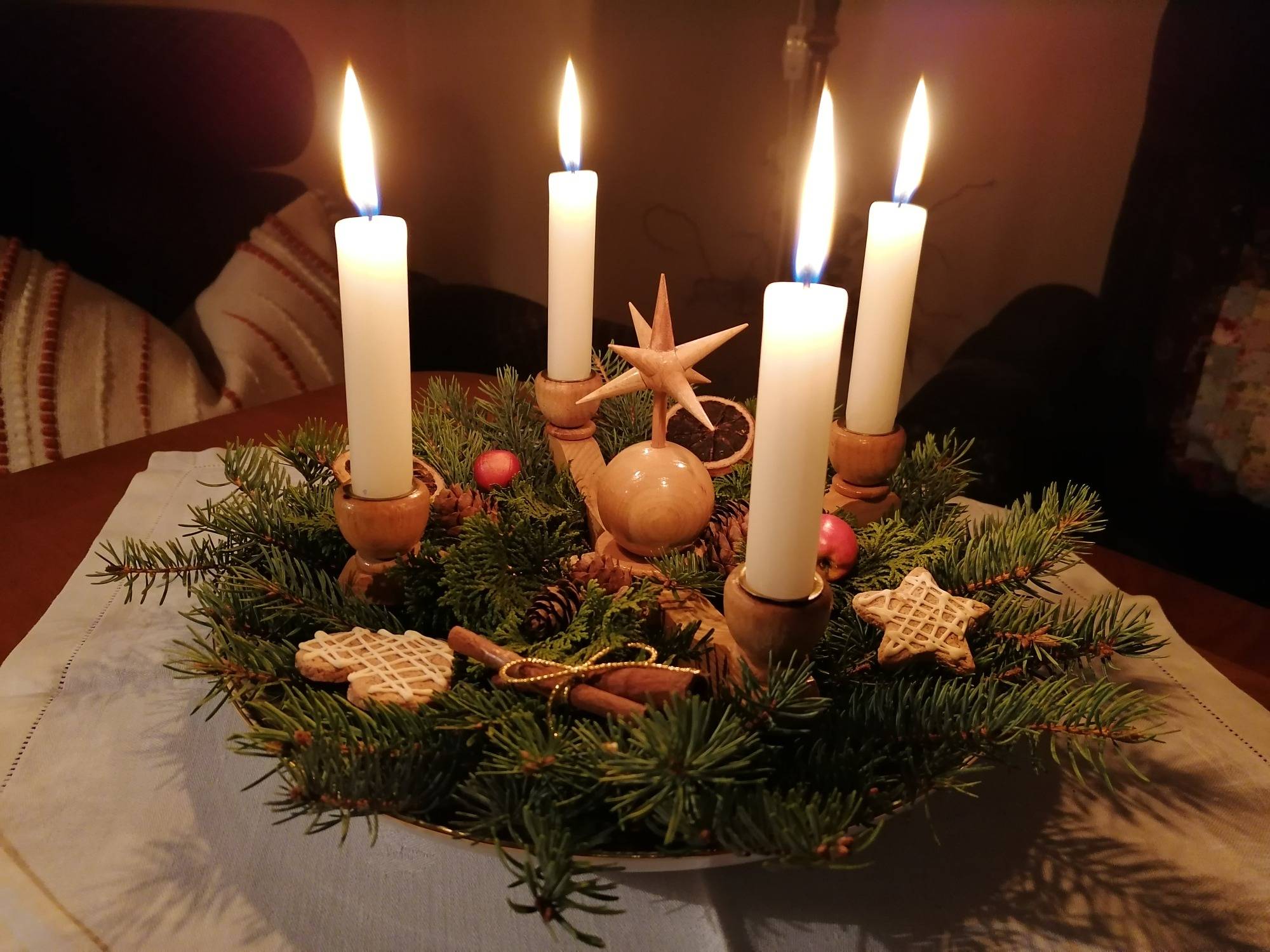 Aus einer Fülle an schönen Weihnachtsstoffen wählen sie die Motive aus und nähen mit der Nähmaschine. Mit einem handgeschriebenen Gruß haben sie so eine ganz persönliche Weihnachtsbotschaft für Familie und Freunde. Bei einer gemütlichen Kaffeerunde stimmen wir uns auf die Advents- und Weihnachtszeit ein.