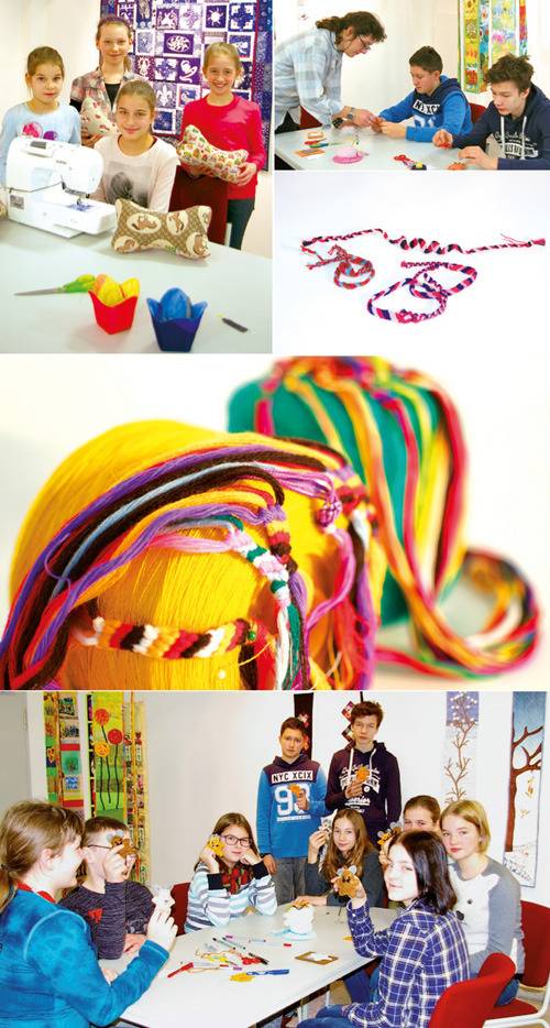 Ob Teddybär, Maus oder Freundschaftsband: Mit kleinen Näh- und Filzarbeiten können hier Schüler ihre eigenen kleinen Schmuckstücke fertigen und