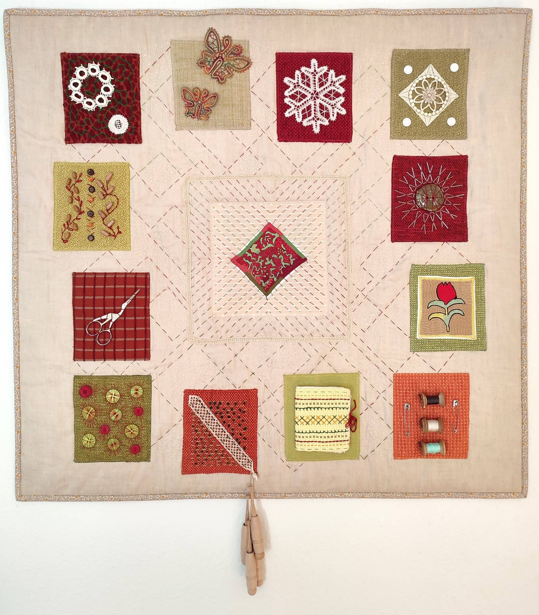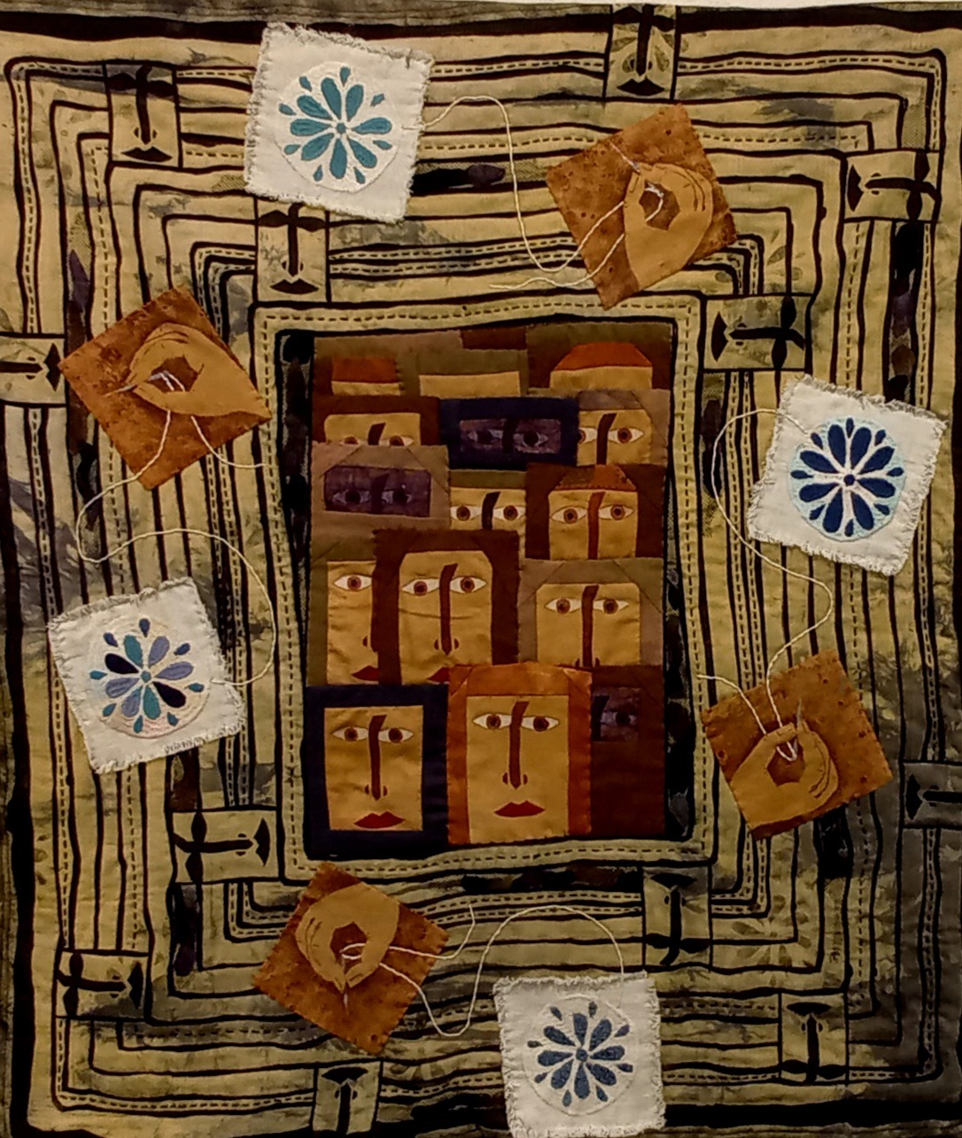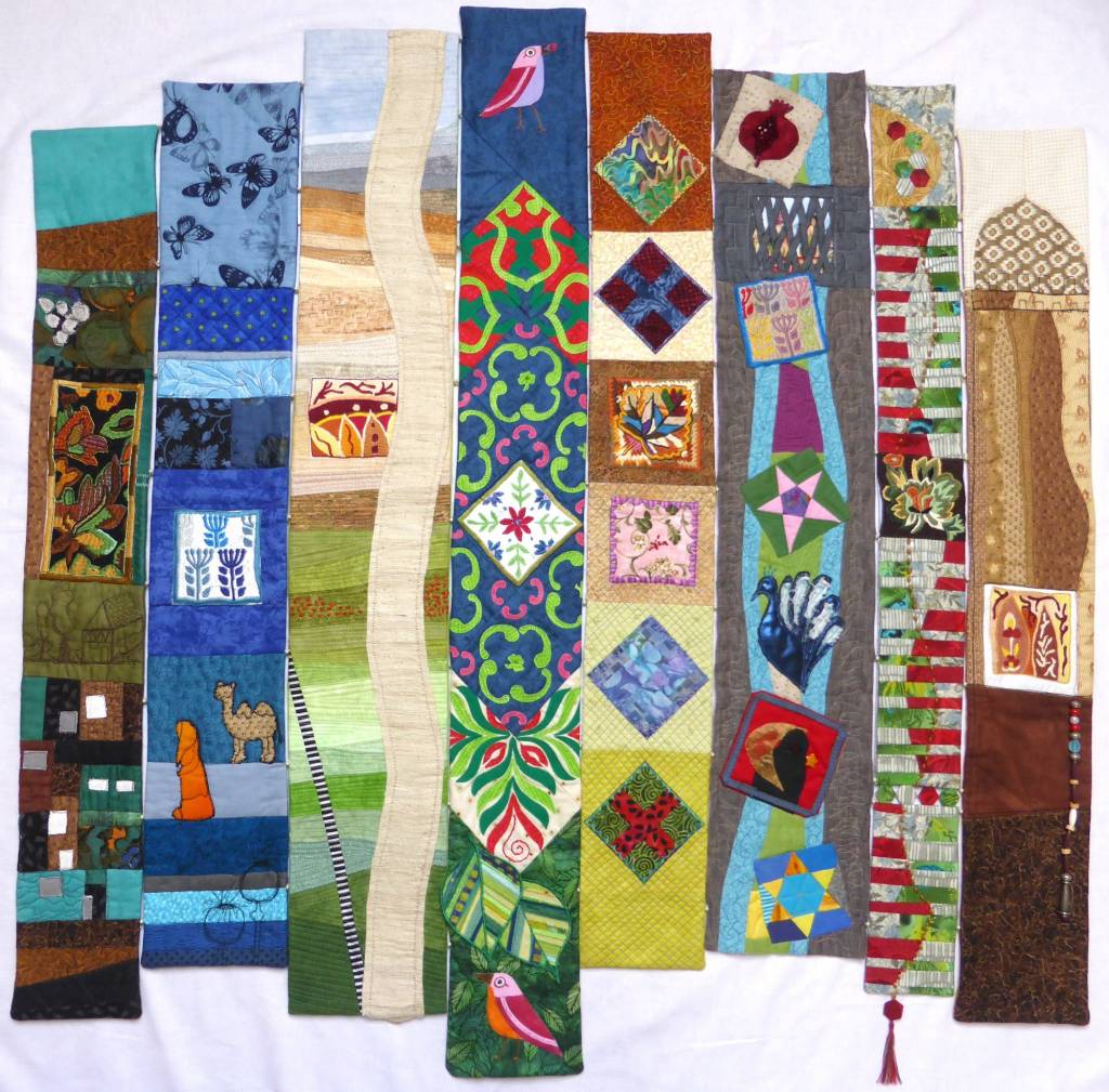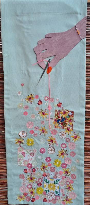 40 Teilnehmer*Innen aus Deutschland, Norwegen, Niederlande, Luxemburg, Spanien und der Schweiz haben in der Mitverwendung dieser Stickmotive eigene künstlerische Textilkunstwerke geschaffen, in denen sie sich mit dem west-östlichen Kontext auseinanderstzen. Mehrfach wurden Themen aufgegriffen wie die Rolle der Frauen in Afghanistan, ihre stickende Tätigkeit oder die orienatlische Ornamentik.