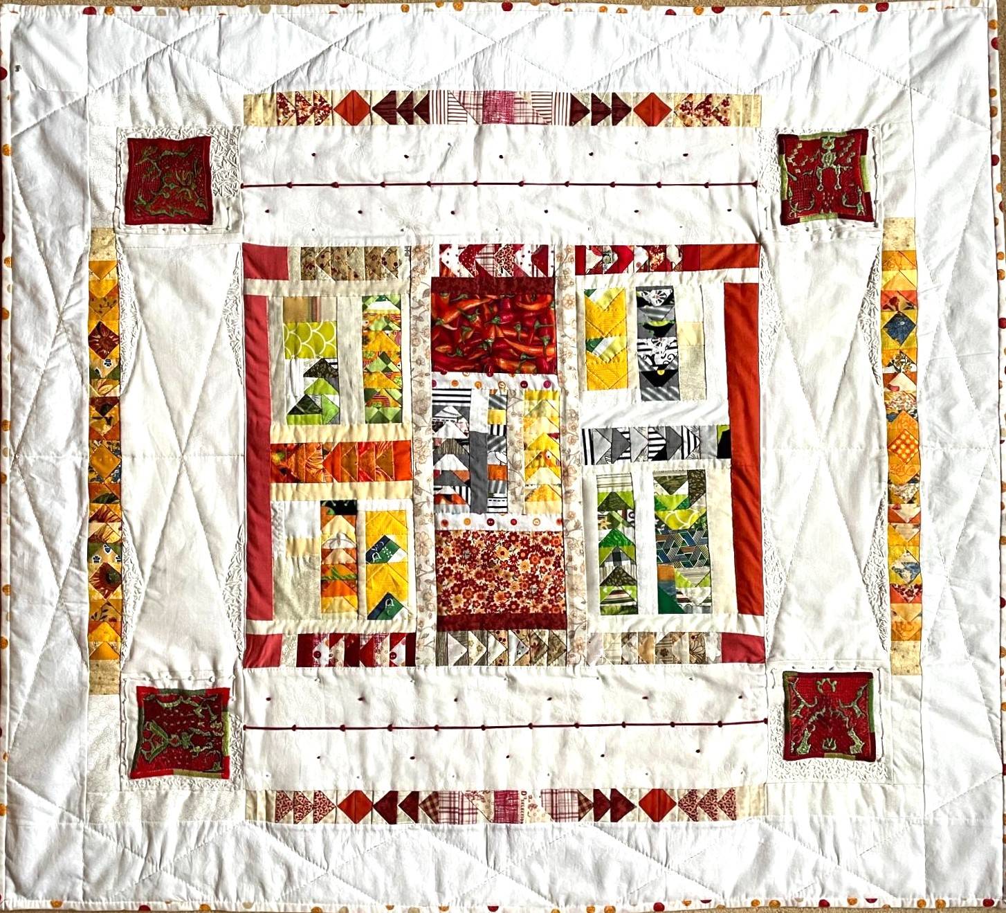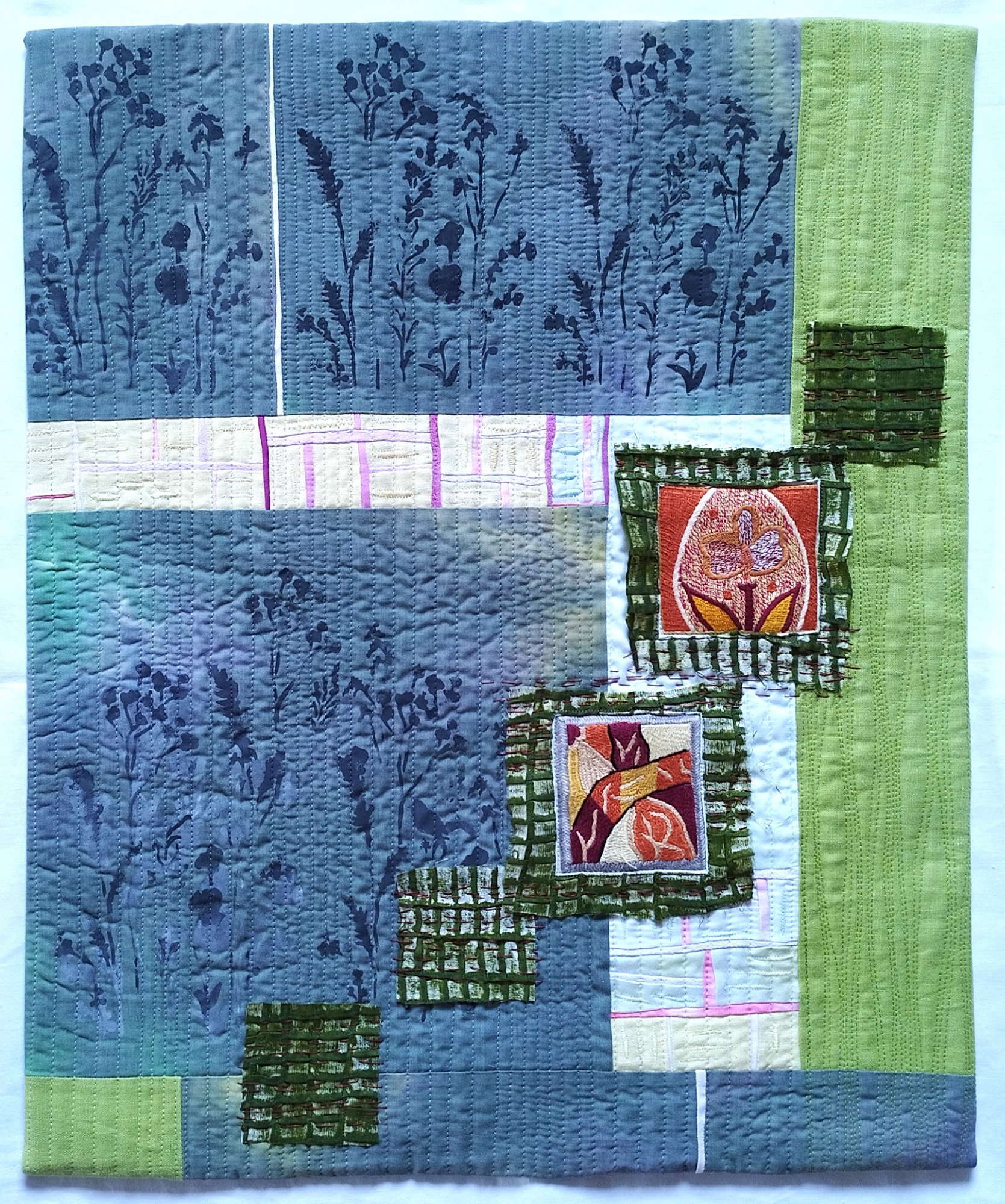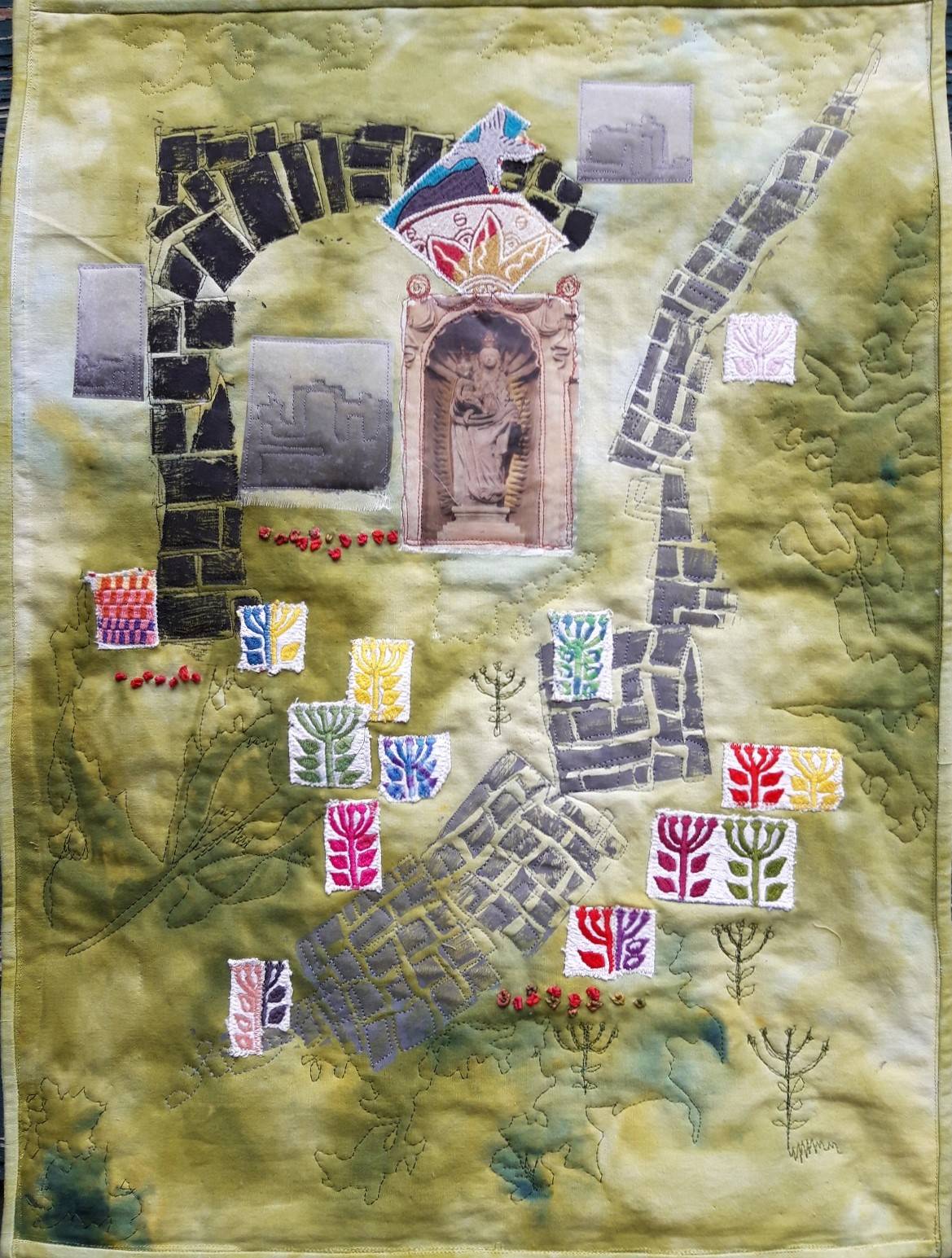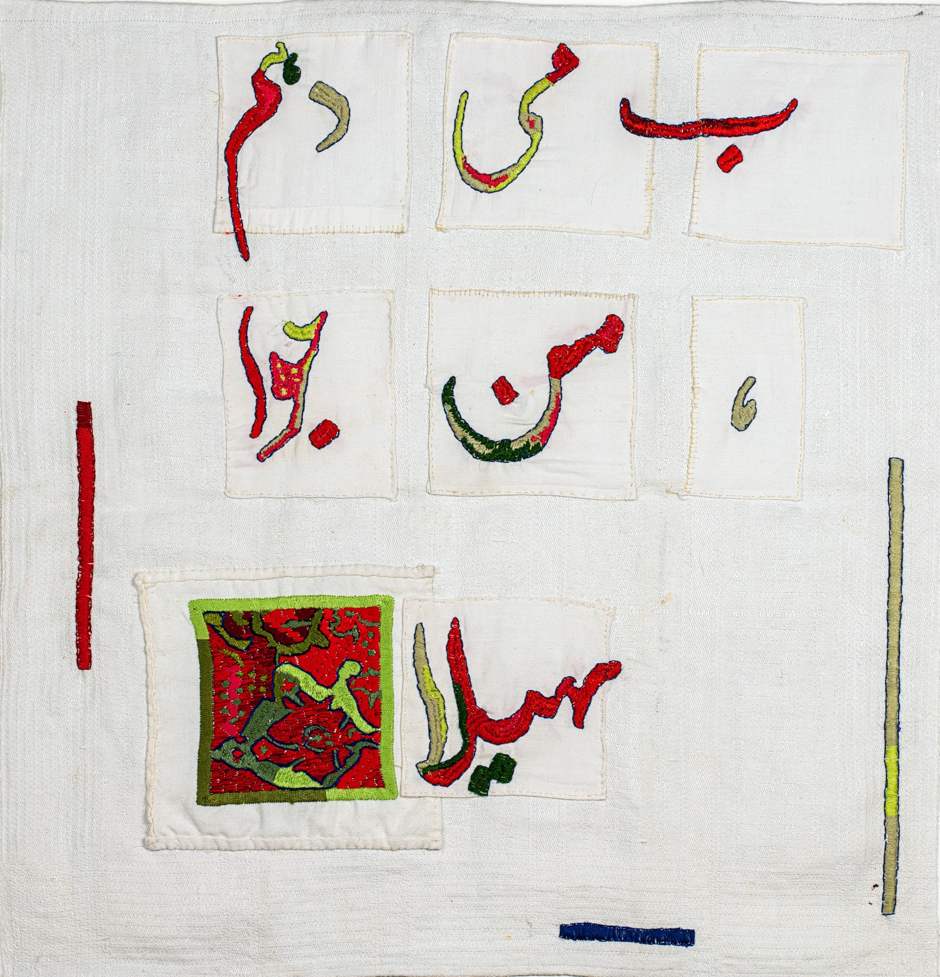 40 Teilnehmer*Innen aus Deutschland, Norwegen, Niederlande, Luxemburg, Spanien und der Schweiz haben in der Mitverwendung dieser Stickmotive eigene künstlerische Textilkunstwerke geschaffen, in denen sie sich mit dem west-östlichen Kontext auseinanderstzen. Mehrfach wurden Themen aufgegriffen wie die Rolle der Frauen in Afghanistan, ihre stickende Tätigkeit oder die orienatlische Ornamentik.